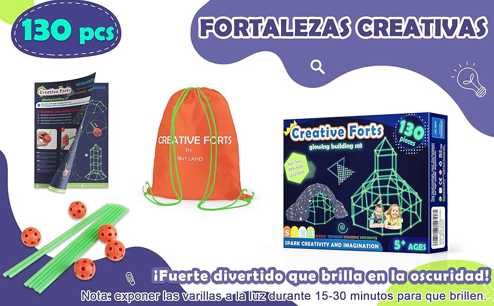 Kit Construccion Fuertes Ninos Brillan En La Oscuridad 130 Piezas Creative Fort Toy Para Ninos Y Ninas De 5 Anos Juguetes De Construccion Stem Diy Kit Castillos Tuneles Tienda De Juegos